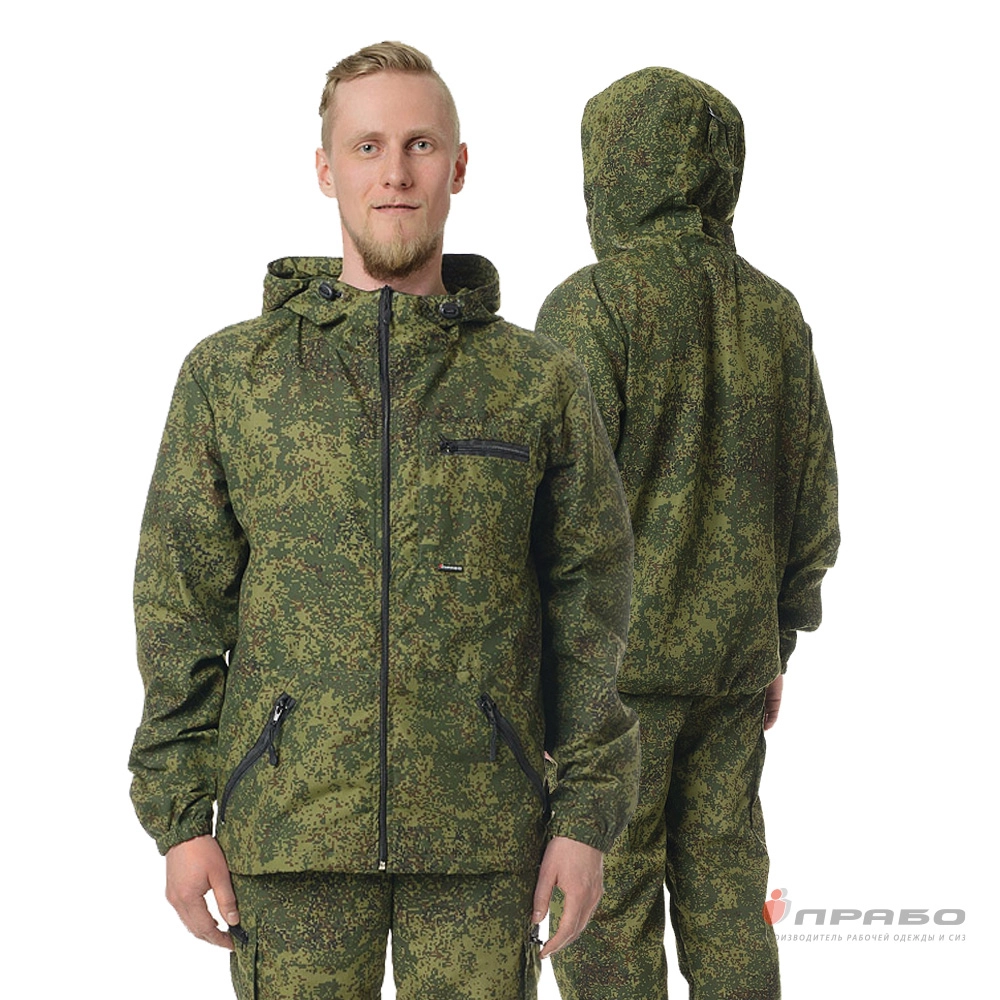 Куртка: прямого силуэта с притачным капюшоном, с центральной застёжкой на молнию. Защиту от насекомых и дополнительный комфорт обеспечат эластичный шнур по низу куртки, а на рукавах – эластичная лента.