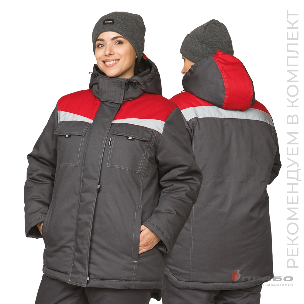 Куртка женская утеплённая "Профессионал" тёмно-серая/красная