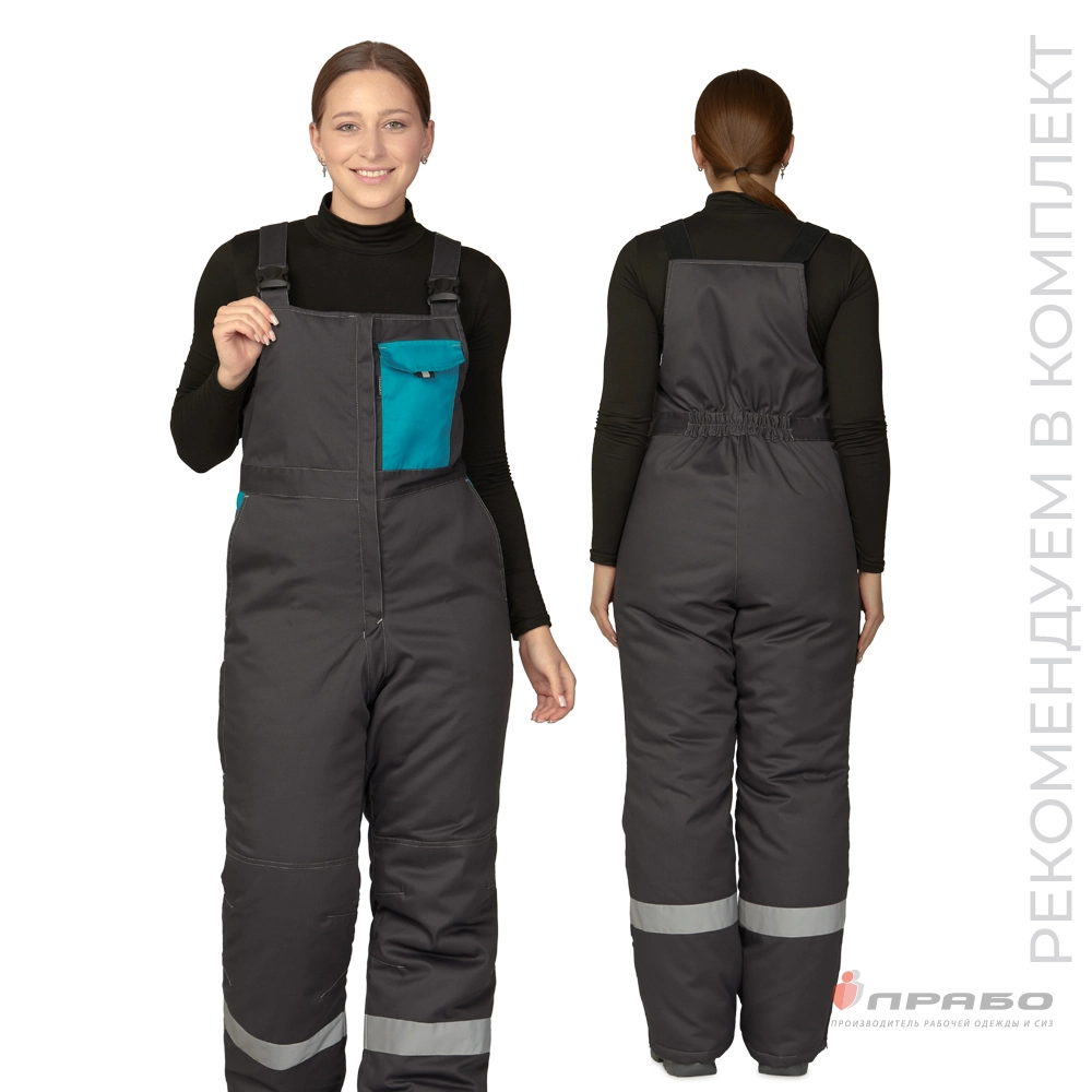 Полукомбинезон женский утеплённый "Бренд" тёмно-серый/бирюза