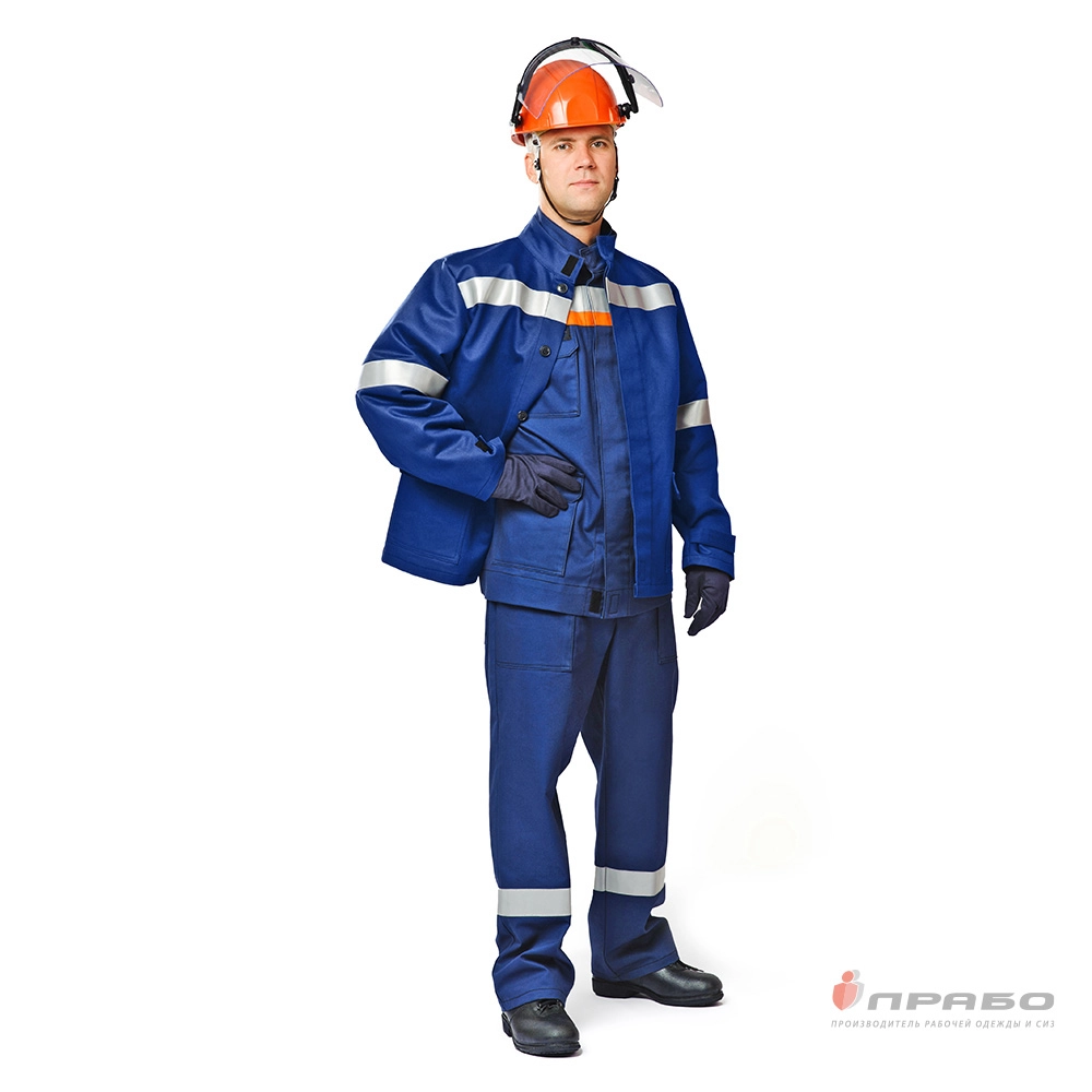 Костюм летний для защиты от электрической дуги "СП04-Л VI"I с уровнем защиты до 51 кал/см² тёмно-синий/оранжевый (куртка и брюки)