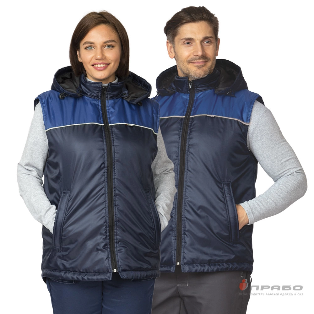 Жилет утеплённый "Сура" тёмно-синий/василёк/серебряный