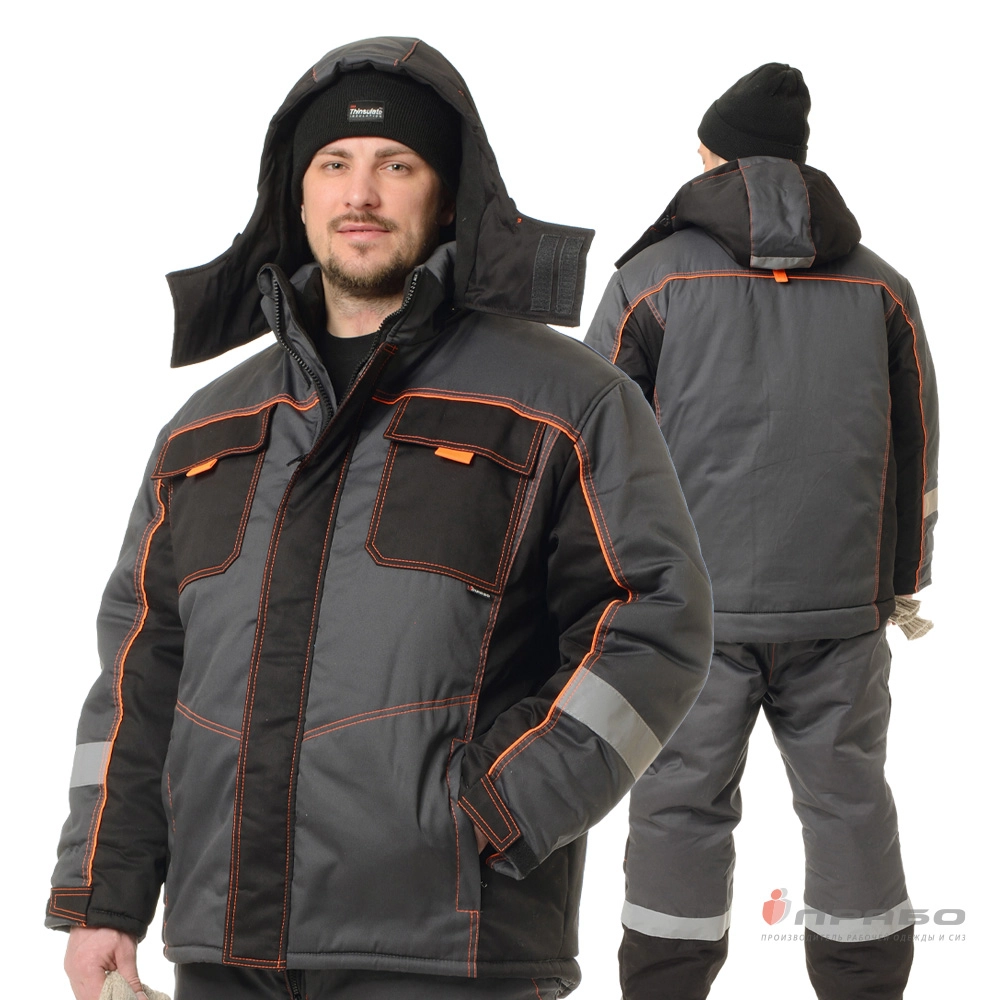 Костюм мужской утеплённый "Бренд" серый/чёрный (куртка и полукомбинезон)