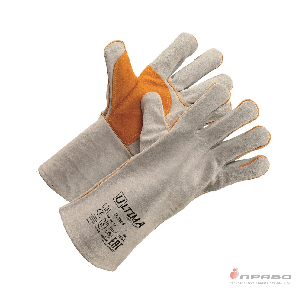 Спилковые пятипалые усиленные краги ULT365 с подкладкой для защиты от искр и брызг расплавленного металла, контакта с нагретыми поверхностями, конвективного тепла, значительных механических воздействий.